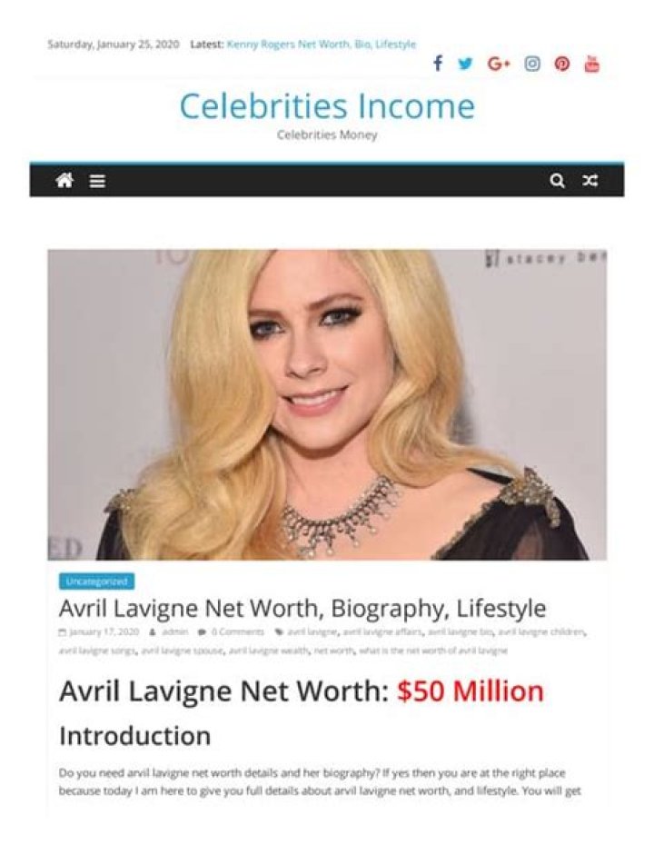 Question 1: How much money is Avril Lavigne worth?